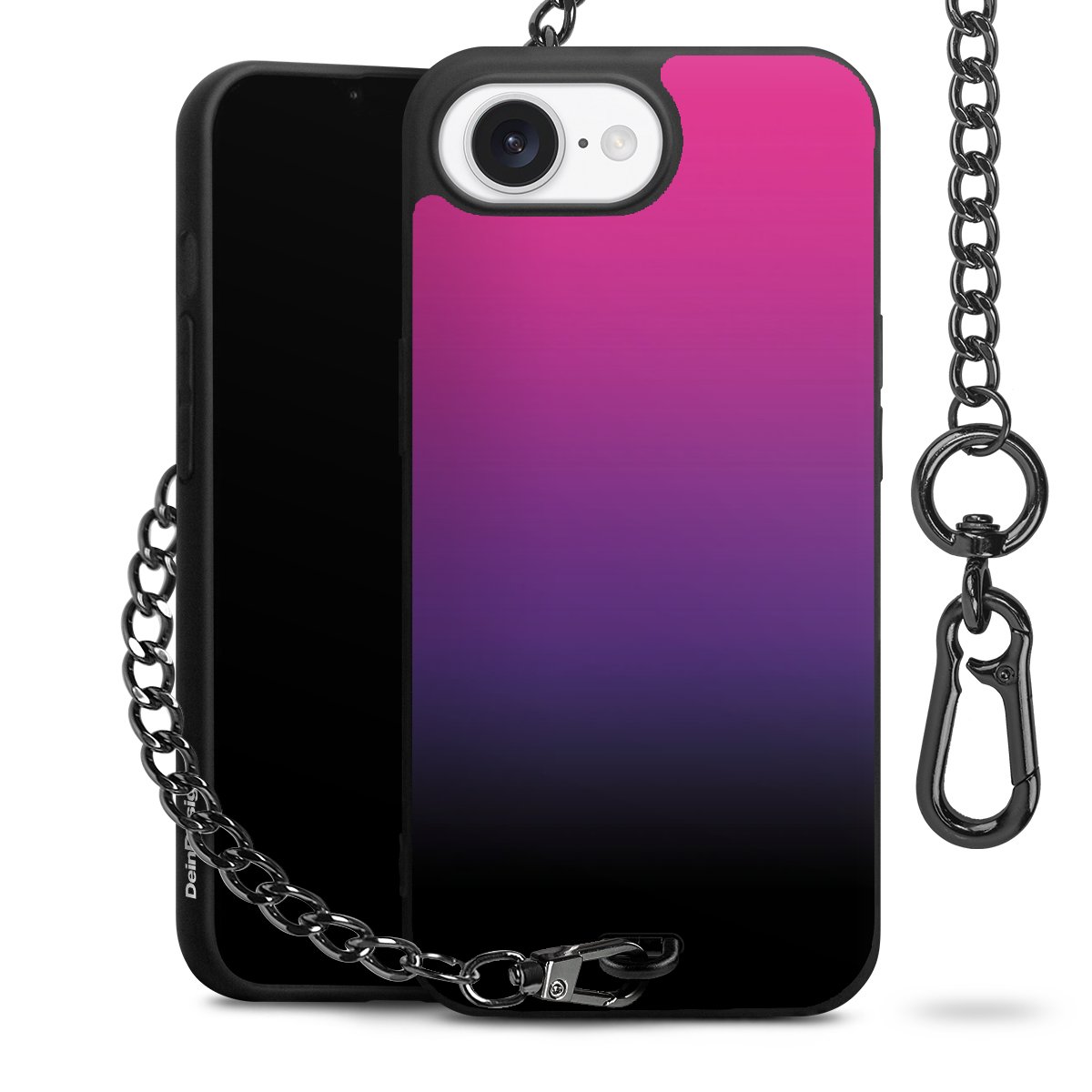 - Mattschwarze Handyhülle mit Metallkette