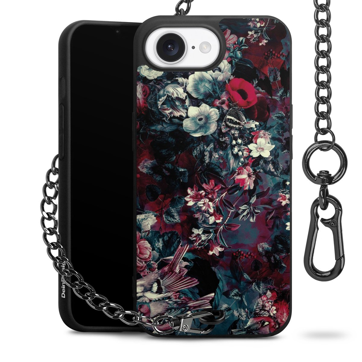 Die mattschwarze Silikon-Handyhülle besteht aus robustem TPU (thermoplastisches Polyurethan). Sie ist flexibel und schützt Dein Smartphone vor Stößen und Kratzern. Die Kette sowie der Karabinerhaken sind aus Metall in Gunmetal-Optik gefertigt. Für dieses Produkt kommen ausschließlich TÜV-geprüfte Materialien zum Einsatz.