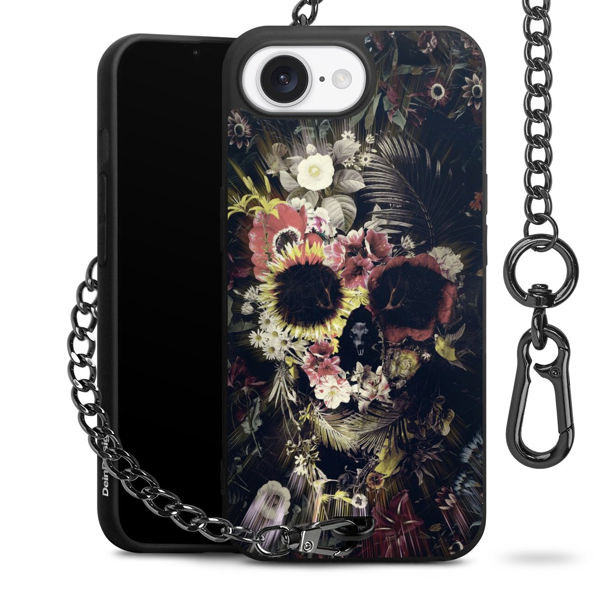 Die mattschwarze Silikon-Handyhülle besteht aus robustem TPU (thermoplastisches Polyurethan). Sie ist flexibel und schützt Dein Smartphone vor Stößen und Kratzern. Die Kette sowie der Karabinerhaken sind aus Metall in Gunmetal-Optik gefertigt. Für dieses Produkt kommen ausschließlich TÜV-geprüfte Materialien zum Einsatz.