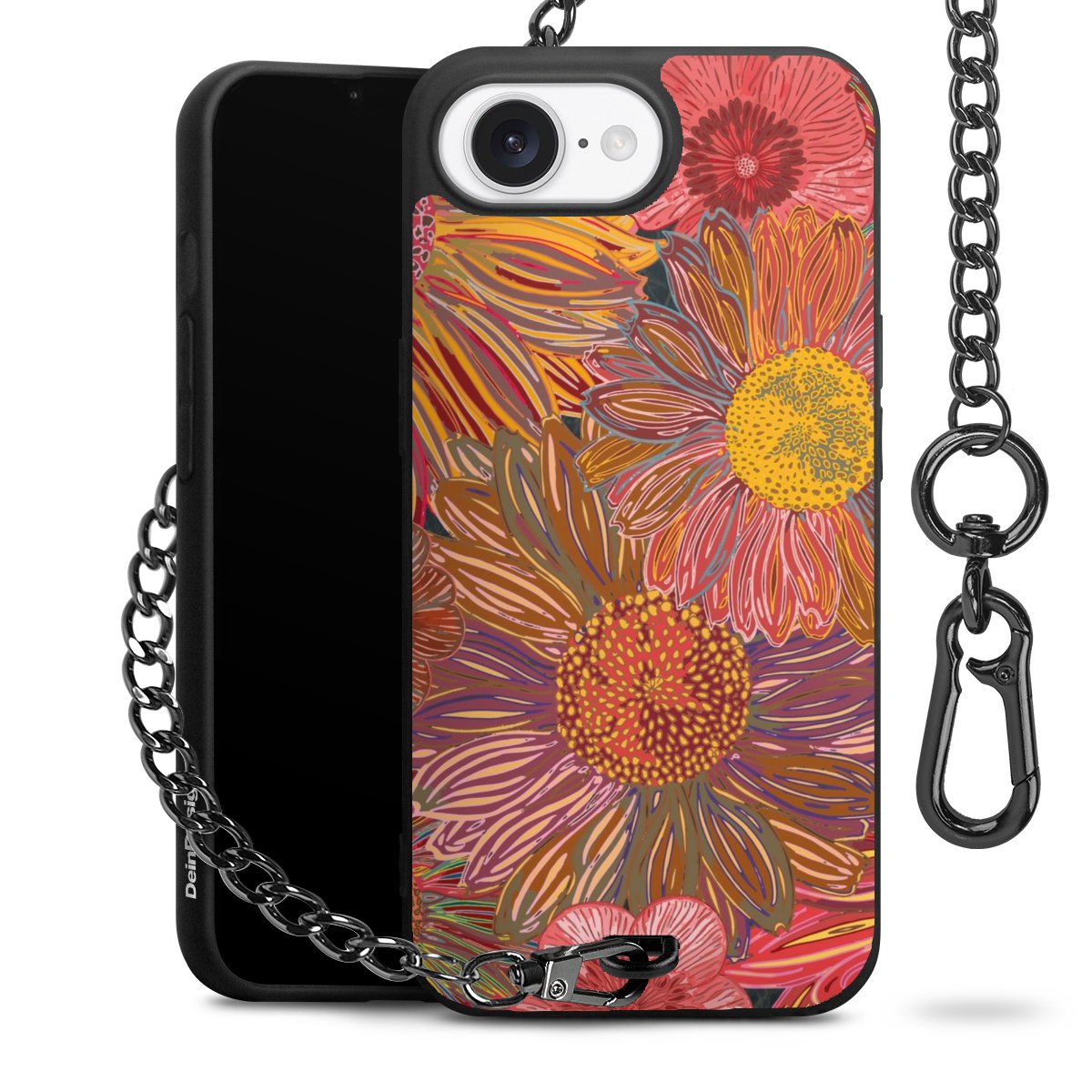 • Mattschwarze Handyhülle mit Metallkette