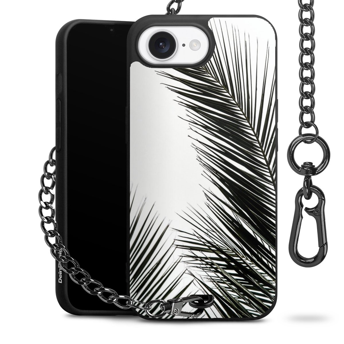 • Mattschwarze Handyhülle mit Metallkette