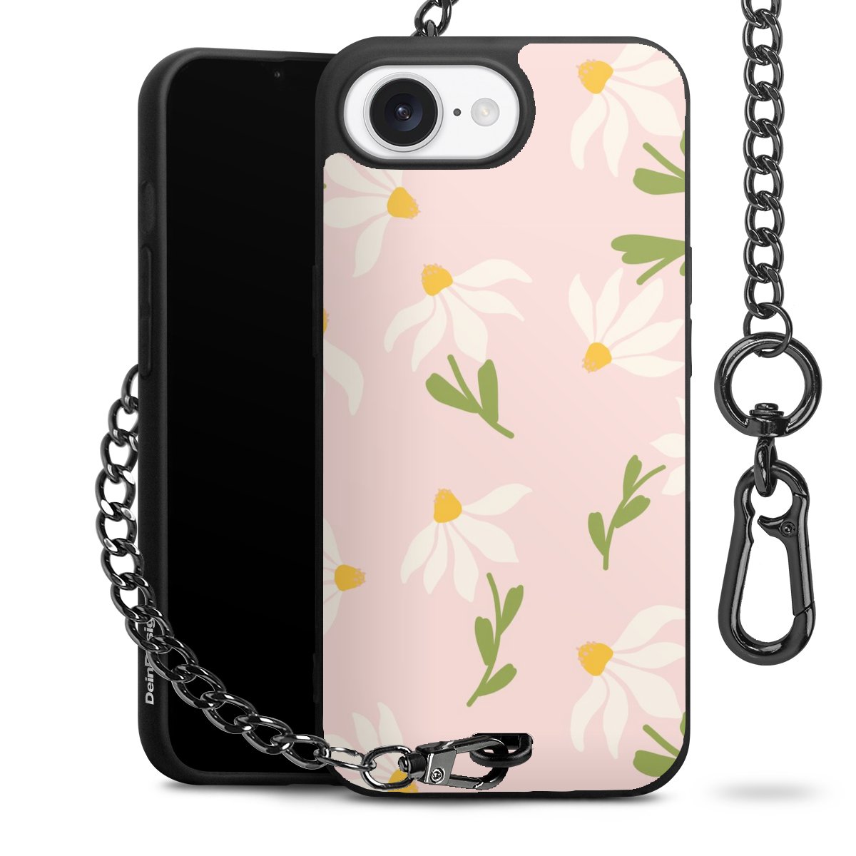 • Mattschwarze Handyhülle mit Metallkette