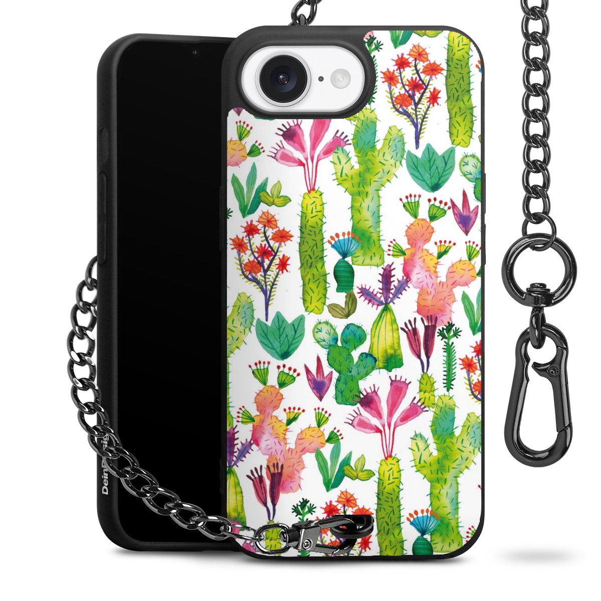 • Mattschwarze Handyhülle mit Metallkette