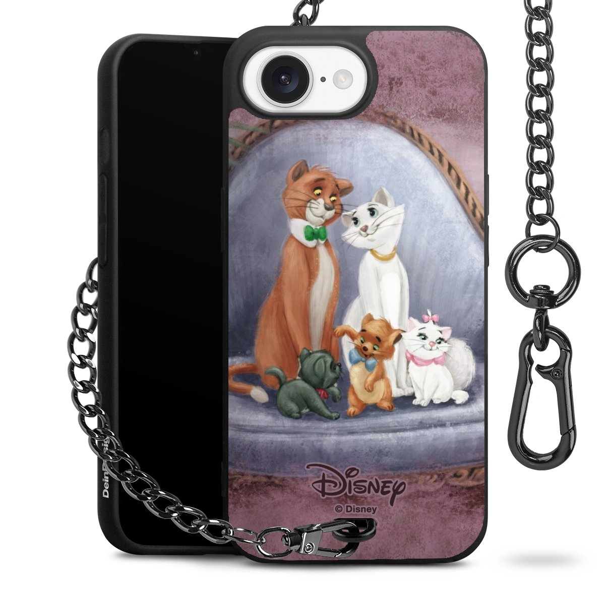 • Mattschwarze Handyhülle mit Metallkette