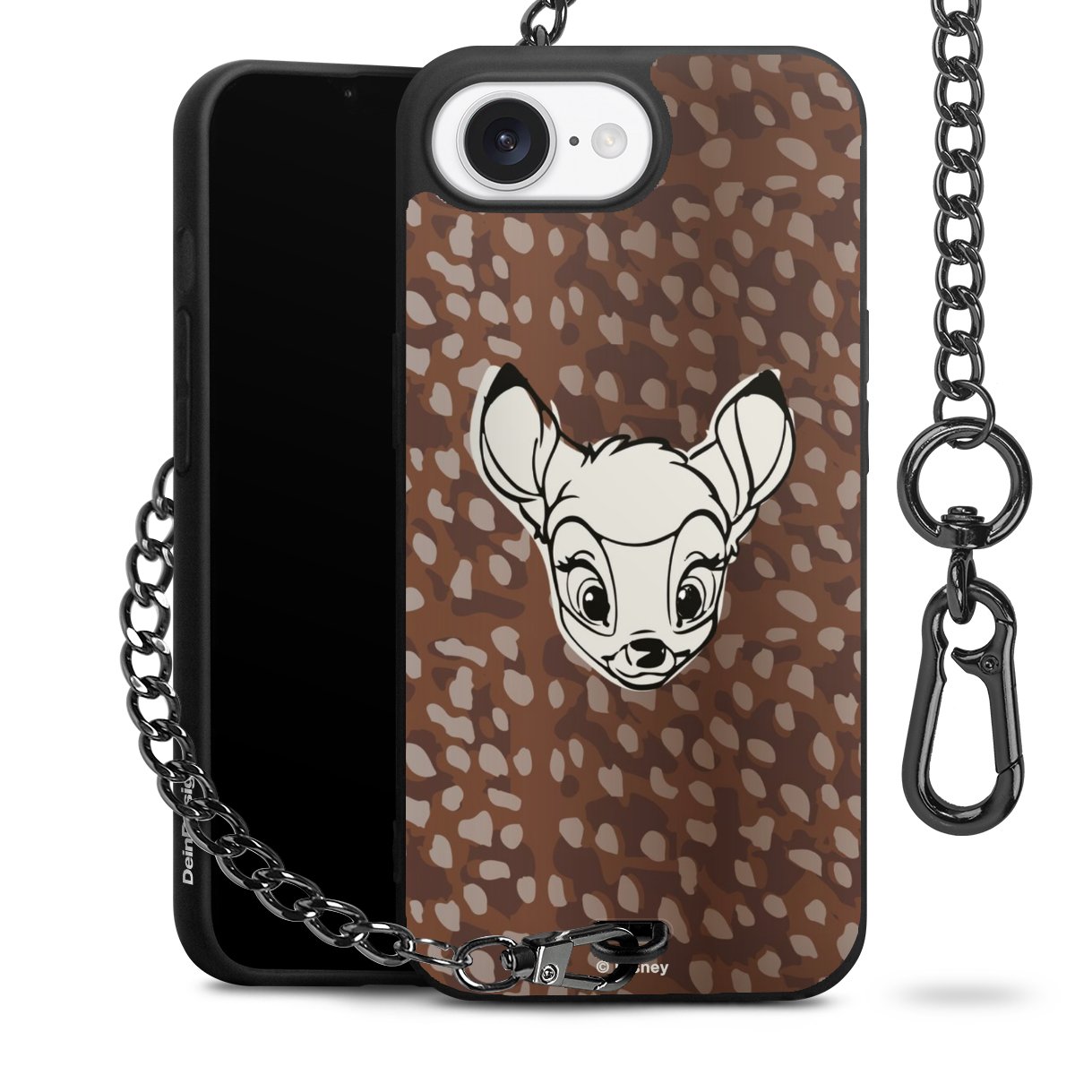 Die Handyhülle verfügt über eine mittig am unteren Rand platzierte Öse, an der die Metallkette stabil befestigt ist. Bestelle die Hülle einfach für Dein Smartphone-Modell, dann passt sie wie angegossen und Du brauchst sie bloß einmal anzudrücken. Handy in die Tasche, Karabiner an den Hosenbund – schon kann die Party starten.