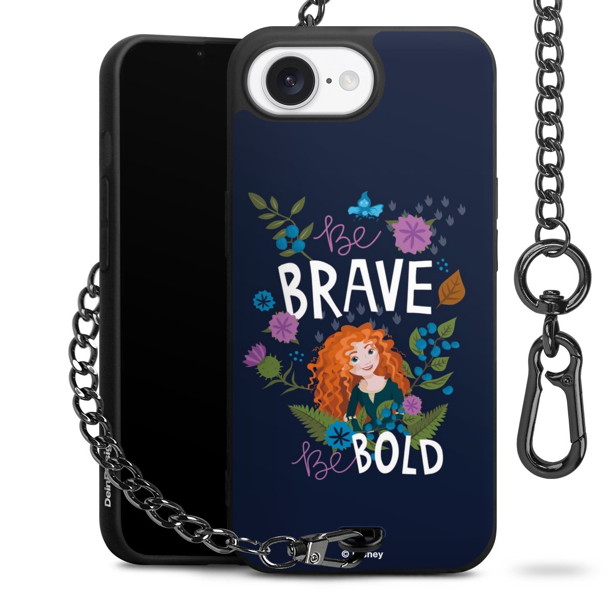 • Mattschwarze Handyhülle mit Metallkette