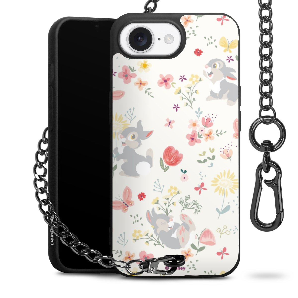 Die Handyhülle verfügt über eine mittig am unteren Rand platzierte Öse, an der die Metallkette stabil befestigt ist. Bestelle die Hülle einfach für Dein Smartphone-Modell, dann passt sie wie angegossen und Du brauchst sie bloß einmal anzudrücken. Handy in die Tasche, Karabiner an den Hosenbund – schon kann die Party starten.