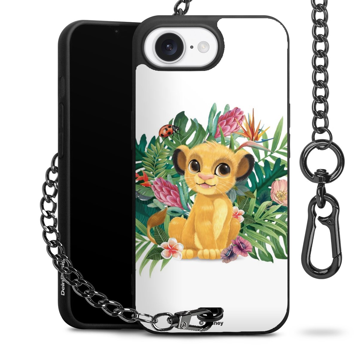 Die Handyhülle verfügt über eine mittig am unteren Rand platzierte Öse, an der die Metallkette stabil befestigt ist. Bestelle die Hülle einfach für Dein Smartphone-Modell, dann passt sie wie angegossen und Du brauchst sie bloß einmal anzudrücken. Handy in die Tasche, Karabiner an den Hosenbund – schon kann die Party starten.