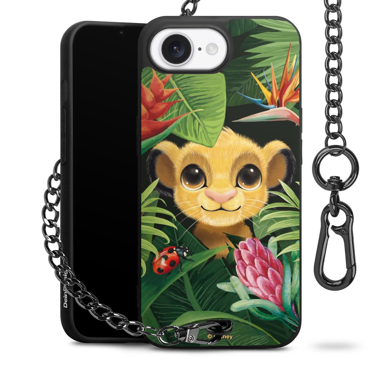 Die Handyhülle verfügt über eine mittig am unteren Rand platzierte Öse, an der die Metallkette stabil befestigt ist. Bestelle die Hülle einfach für Dein Smartphone-Modell, dann passt sie wie angegossen und Du brauchst sie bloß einmal anzudrücken. Handy in die Tasche, Karabiner an den Hosenbund – schon kann die Party starten.