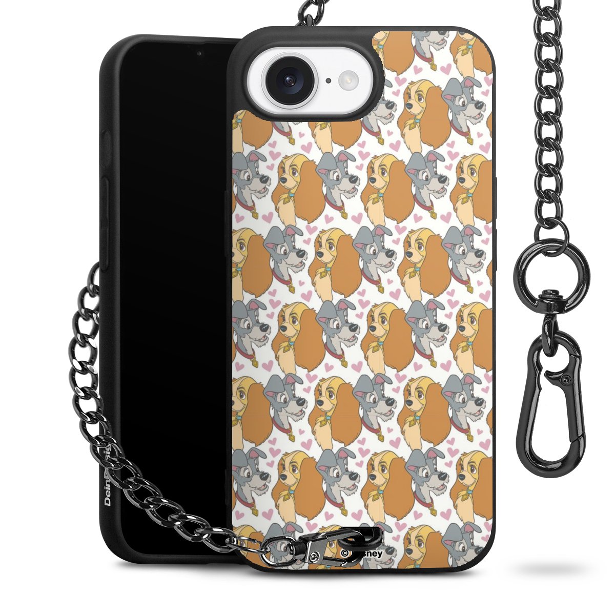 • Mattschwarze Handyhülle mit Metallkette