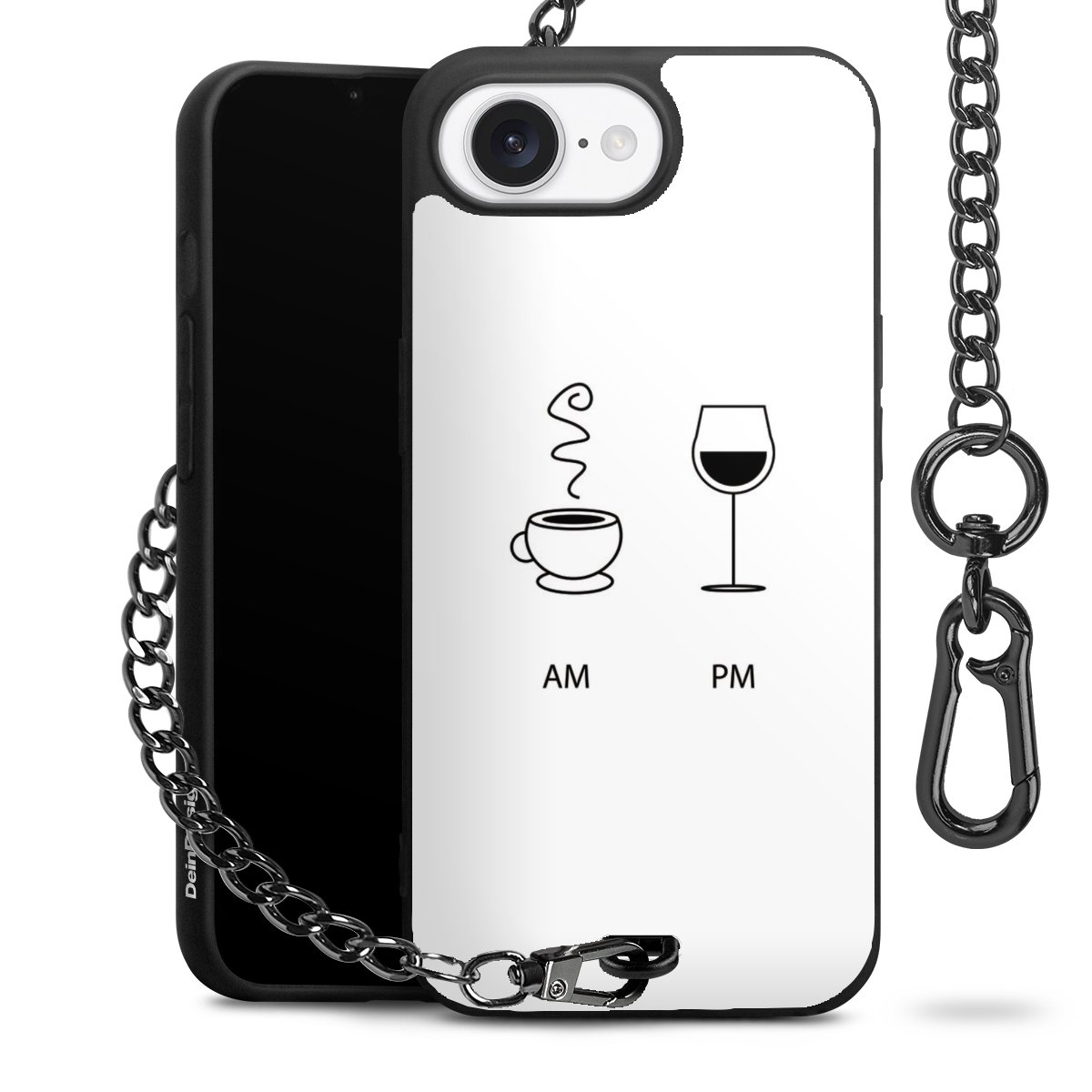 Die mattschwarze Silikon-Handyhülle besteht aus robustem TPU (thermoplastisches Polyurethan). Sie ist flexibel und schützt Dein Smartphone vor Stößen und Kratzern. Die Kette sowie der Karabinerhaken sind aus Metall in Gunmetal-Optik gefertigt. Für dieses Produkt kommen ausschließlich TÜV-geprüfte Materialien zum Einsatz.