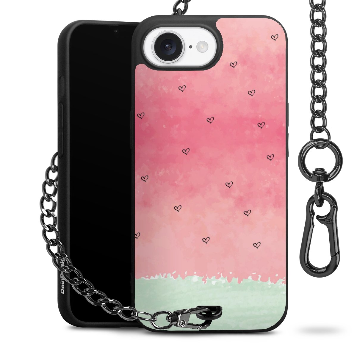 • Mattschwarze Handyhülle mit Metallkette