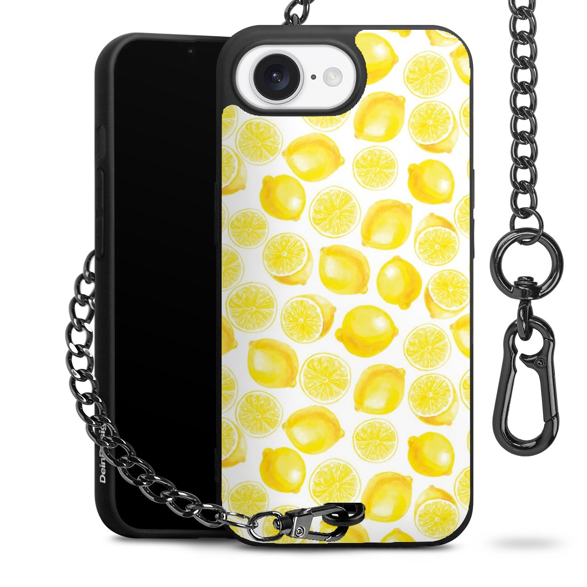Die mattschwarze Silikon-Handyhülle besteht aus robustem TPU (thermoplastisches Polyurethan). Sie ist flexibel und schützt Dein Smartphone vor Stößen und Kratzern. Die Kette sowie der Karabinerhaken sind aus Metall in Gunmetal-Optik gefertigt. Für dieses Produkt kommen ausschließlich TÜV-geprüfte Materialien zum Einsatz.