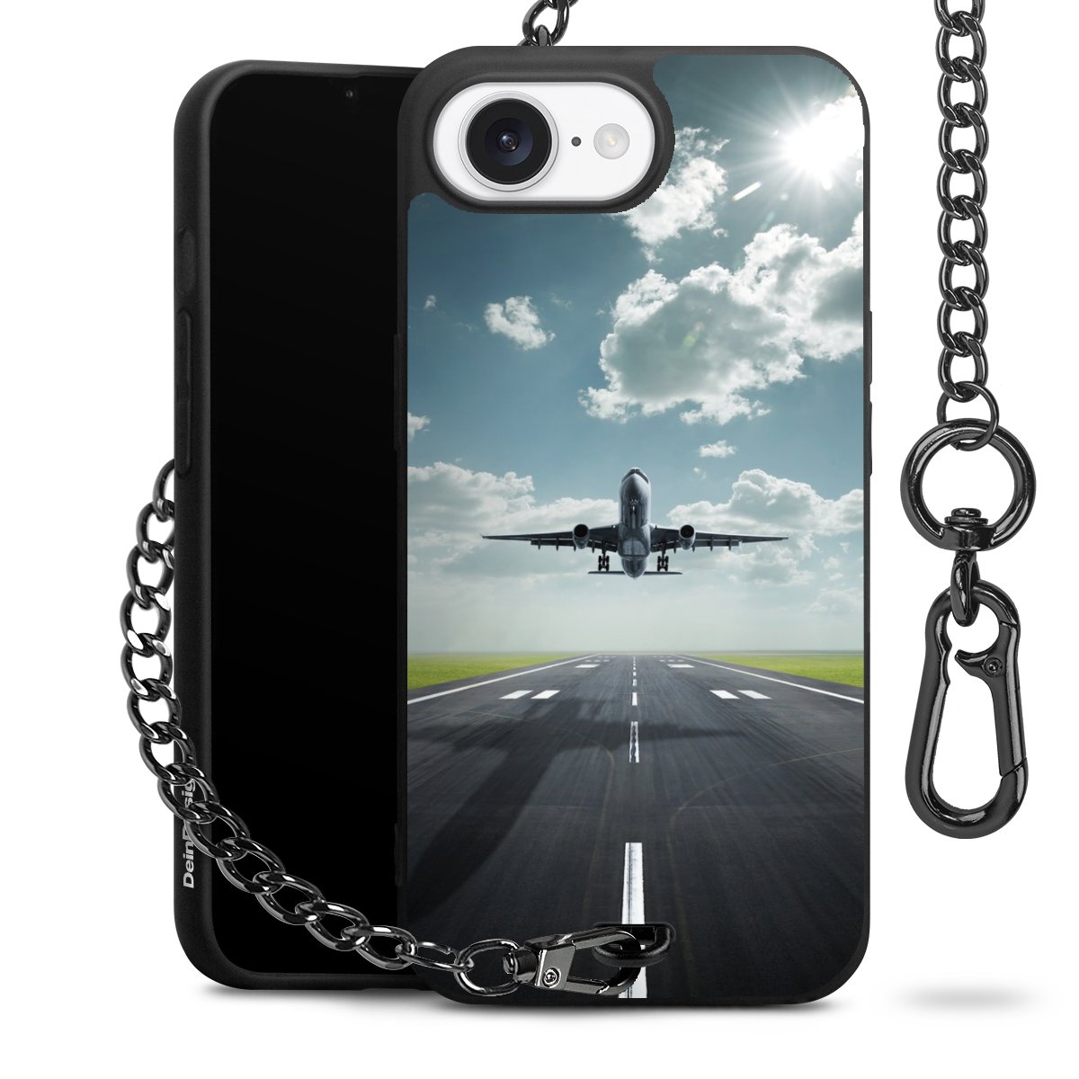 - Mattschwarze Handyhülle mit Metallkette