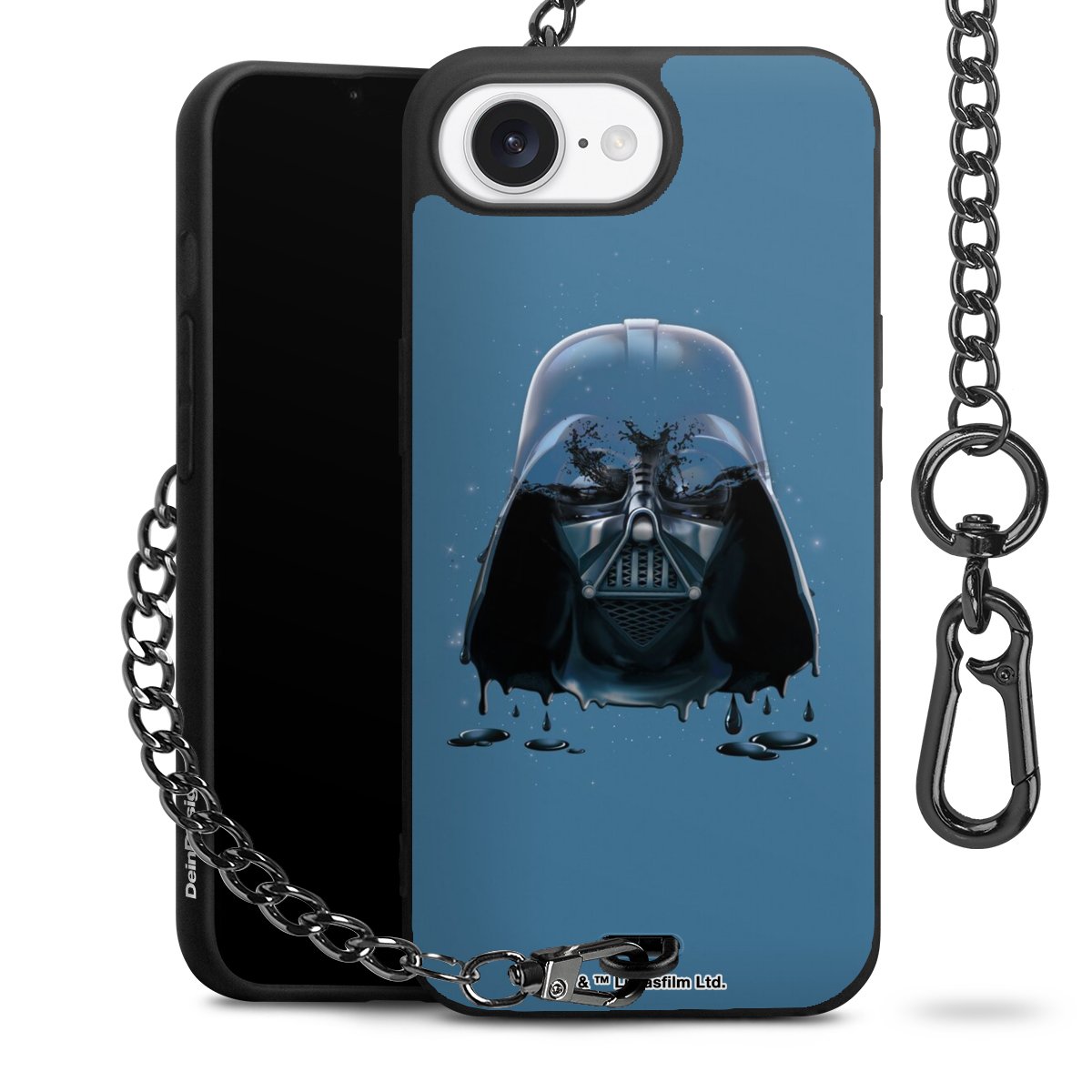 Die mattschwarze Silikon-Handyhülle besteht aus robustem TPU (thermoplastisches Polyurethan). Sie ist flexibel und schützt Dein Smartphone vor Stößen und Kratzern. Die Kette sowie der Karabinerhaken sind aus Metall in Gunmetal-Optik gefertigt. Für dieses Produkt kommen ausschließlich TÜV-geprüfte Materialien zum Einsatz.