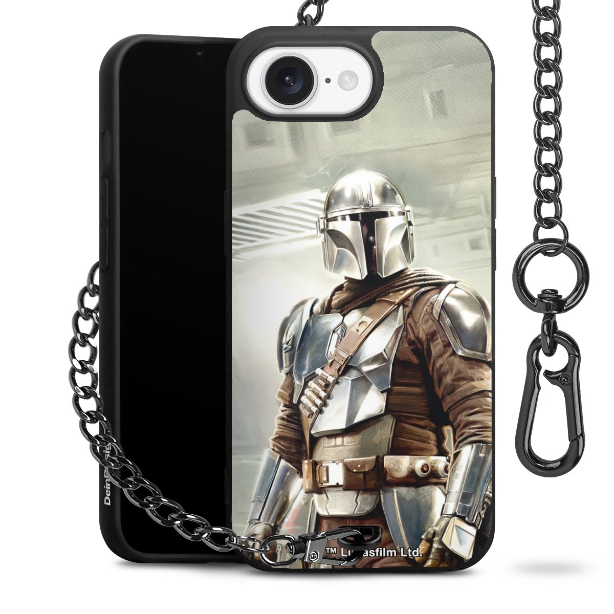Die mattschwarze Silikon-Handyhülle besteht aus robustem TPU (thermoplastisches Polyurethan). Sie ist flexibel und schützt Dein Smartphone vor Stößen und Kratzern. Die Kette sowie der Karabinerhaken sind aus Metall in Gunmetal-Optik gefertigt. Für dieses Produkt kommen ausschließlich TÜV-geprüfte Materialien zum Einsatz.