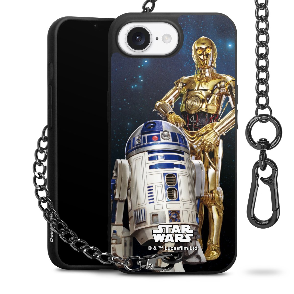 Darth Vader, C3PO, R2D2 und Meister Yoda findest Du in unserem Star Wars Shop auf DeinDesign. Natürlich gibt es auch Star Wars Handyhüllen mit den legendären Charakteren Luke Skywalker, Prinzessin Leia und Han Solo, den Helden der ersten Saga. Wer jedoch die Hauptfiguren der neuen Star Wars Filme ins Herz geschlossen hat, kann auch Finn und Rey mit ihren mächtigen Waffen auf der Rückseite seines Smartphones haben. Die vielseitigen Schutzhüllen in verschiedenen Ausführungen sind das perfekte Geschenk für alle Star Wars Fans, die ihrem Smartphone eine individuelle Note verleihen wollen.