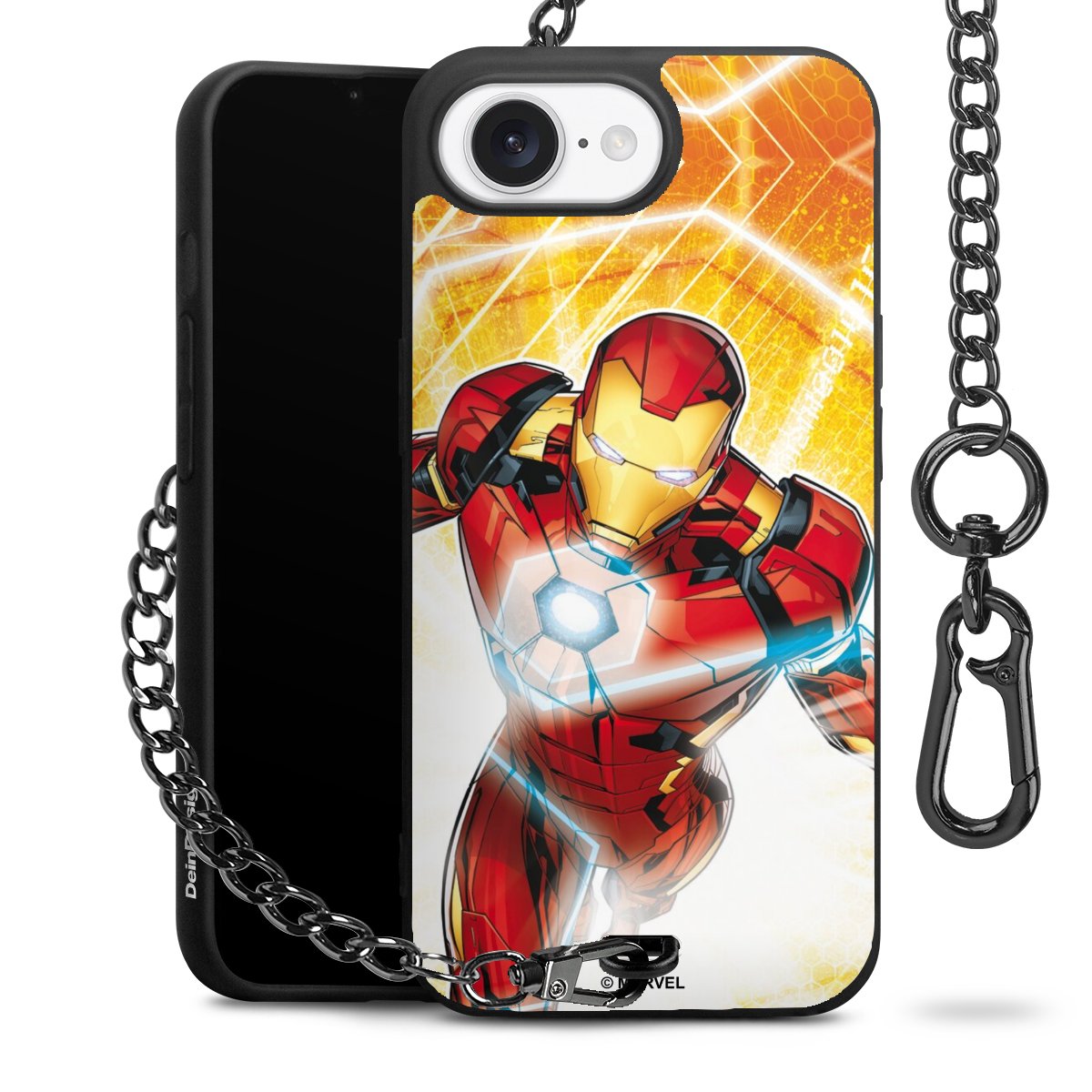 Die mattschwarze Silikon-Handyhülle besteht aus robustem TPU (thermoplastisches Polyurethan). Sie ist flexibel und schützt Dein Smartphone vor Stößen und Kratzern. Die Kette sowie der Karabinerhaken sind aus Metall in Gunmetal-Optik gefertigt. Für dieses Produkt kommen ausschließlich TÜV-geprüfte Materialien zum Einsatz.