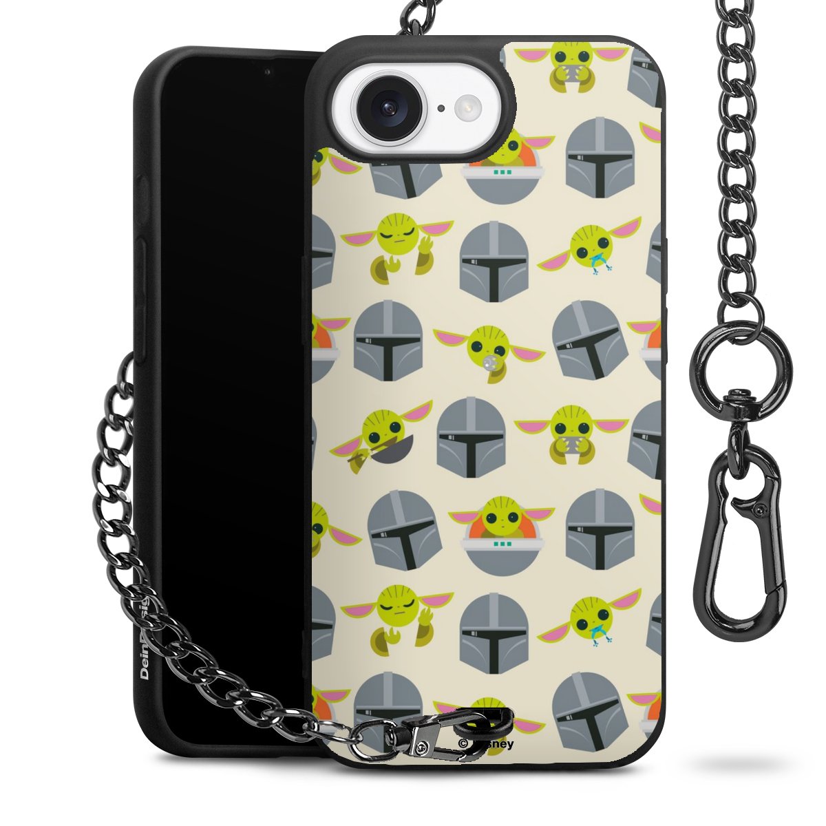 Die mattschwarze Silikon-Handyhülle besteht aus robustem TPU (thermoplastisches Polyurethan). Sie ist flexibel und schützt Dein Smartphone vor Stößen und Kratzern. Die Kette sowie der Karabinerhaken sind aus Metall in Gunmetal-Optik gefertigt. Für dieses Produkt kommen ausschließlich TÜV-geprüfte Materialien zum Einsatz.