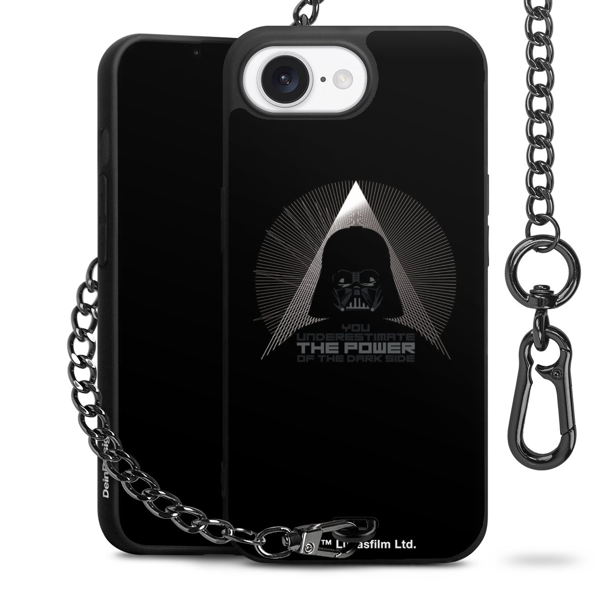 • Mattschwarze Handyhülle mit Metallkette