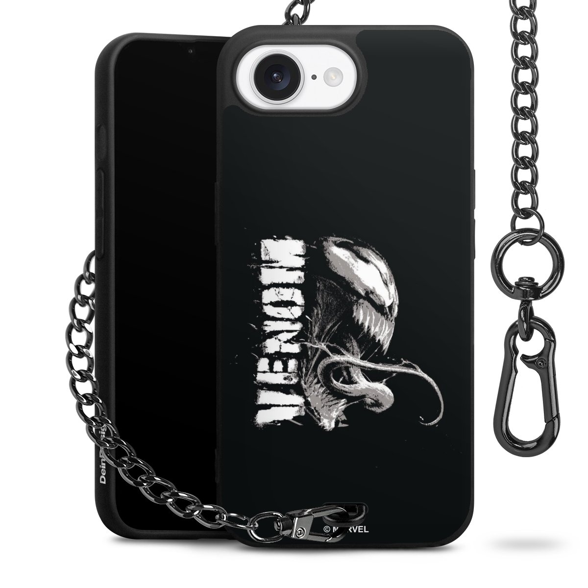 Die mattschwarze Silikon-Handyhülle besteht aus robustem TPU (thermoplastisches Polyurethan). Sie ist flexibel und schützt Dein Smartphone vor Stößen und Kratzern. Die Kette sowie der Karabinerhaken sind aus Metall in Gunmetal-Optik gefertigt. Für dieses Produkt kommen ausschließlich TÜV-geprüfte Materialien zum Einsatz.