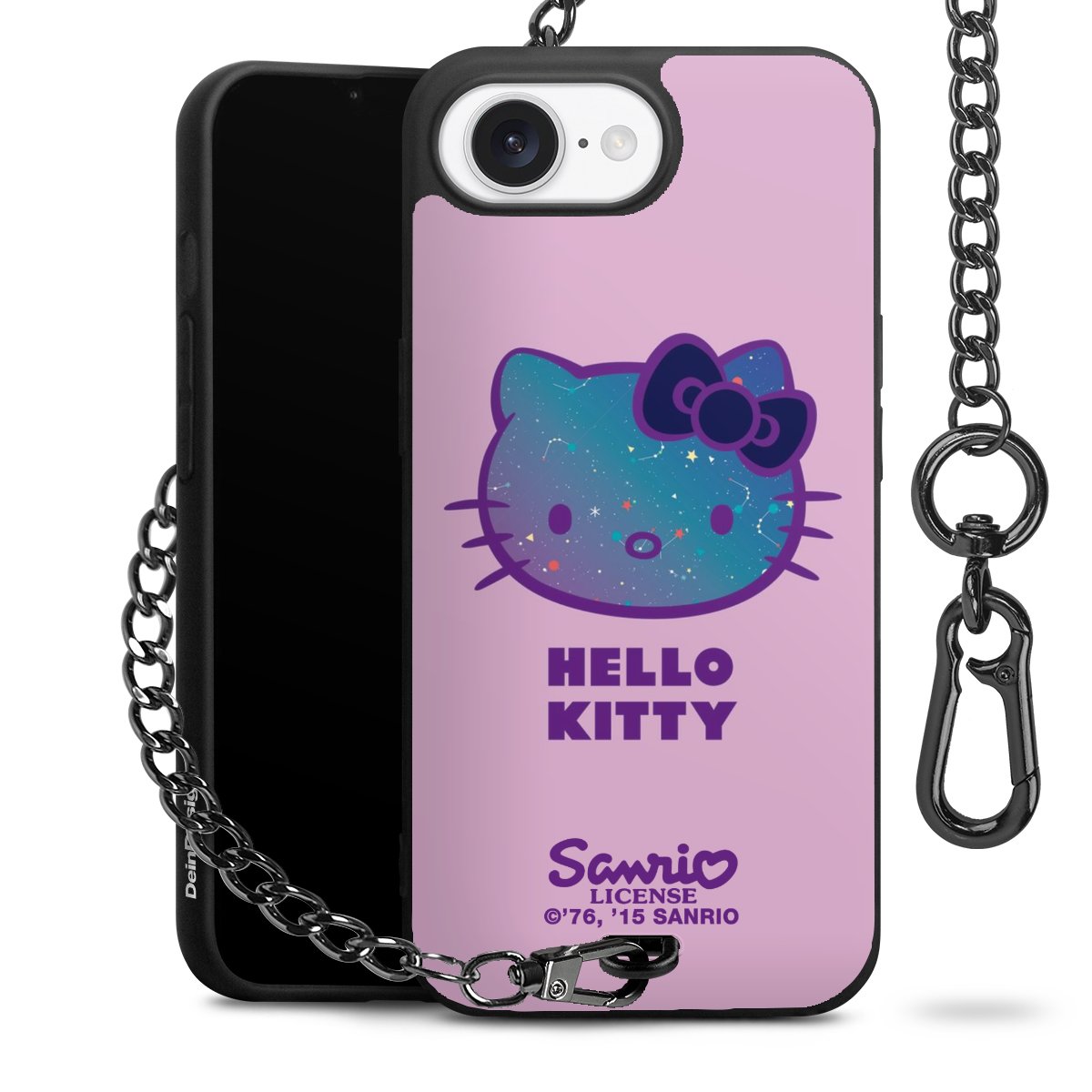 Die Handyhülle verfügt über eine mittig am unteren Rand platzierte Öse, an der die Metallkette stabil befestigt ist. Bestelle die Hülle einfach für Dein Smartphone-Modell, dann passt sie wie angegossen und Du brauchst sie bloß einmal anzudrücken. Handy in die Tasche, Karabiner an den Hosenbund – schon kann die Party starten.