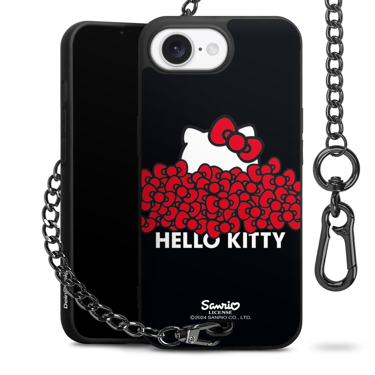 Die mattschwarze Silikon-Handyhülle besteht aus robustem TPU (thermoplastisches Polyurethan). Sie ist flexibel und schützt Dein Smartphone vor Stößen und Kratzern. Die Kette sowie der Karabinerhaken sind aus Metall in Gunmetal-Optik gefertigt. Für dieses Produkt kommen ausschließlich TÜV-geprüfte Materialien zum Einsatz.
