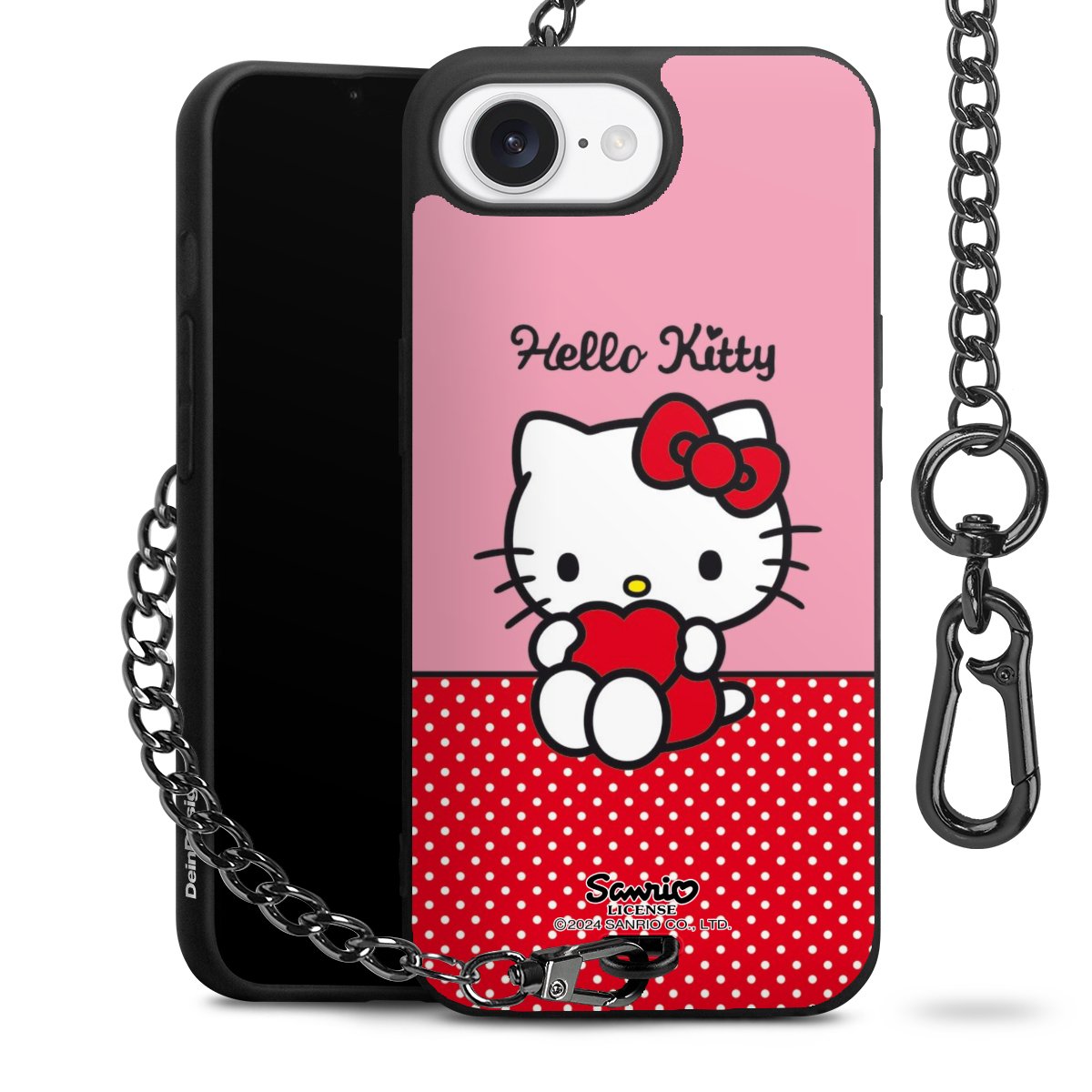 Die mattschwarze Silikon-Handyhülle besteht aus robustem TPU (thermoplastisches Polyurethan). Sie ist flexibel und schützt Dein Smartphone vor Stößen und Kratzern. Die Kette sowie der Karabinerhaken sind aus Metall in Gunmetal-Optik gefertigt. Für dieses Produkt kommen ausschließlich TÜV-geprüfte Materialien zum Einsatz.