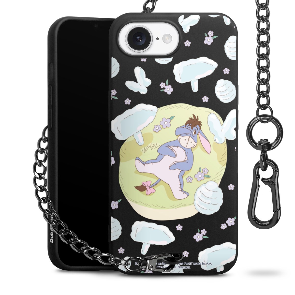 Die Handyhülle verfügt über eine mittig am unteren Rand platzierte Öse, an der die Metallkette stabil befestigt ist. Bestelle die Hülle einfach für Dein Smartphone-Modell, dann passt sie wie angegossen und Du brauchst sie bloß einmal anzudrücken. Handy in die Tasche, Karabiner an den Hosenbund – schon kann die Party starten.