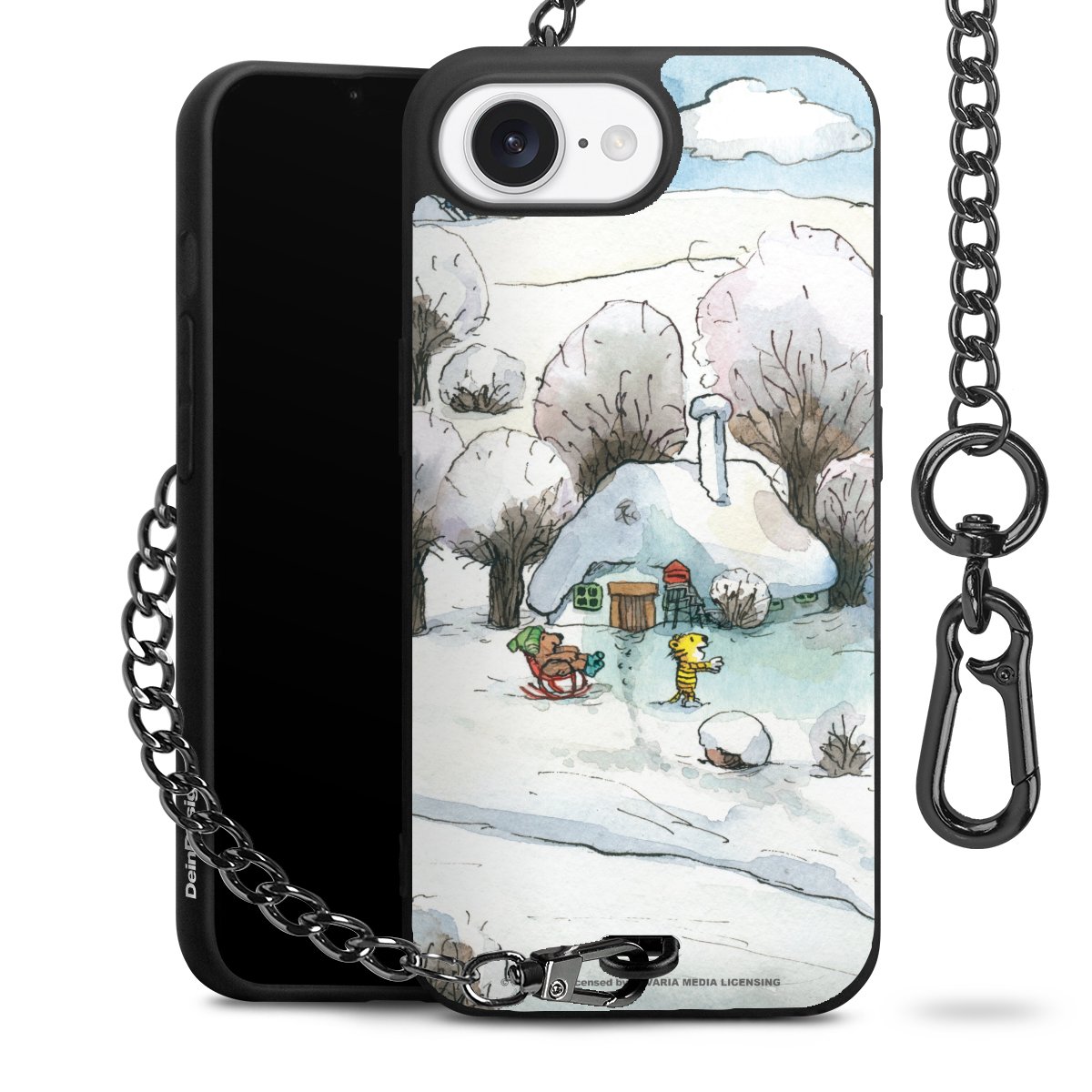Die mattschwarze Silikon-Handyhülle besteht aus robustem TPU (thermoplastisches Polyurethan). Sie ist flexibel und schützt Dein Smartphone vor Stößen und Kratzern. Die Kette sowie der Karabinerhaken sind aus Metall in Gunmetal-Optik gefertigt. Für dieses Produkt kommen ausschließlich TÜV-geprüfte Materialien zum Einsatz.