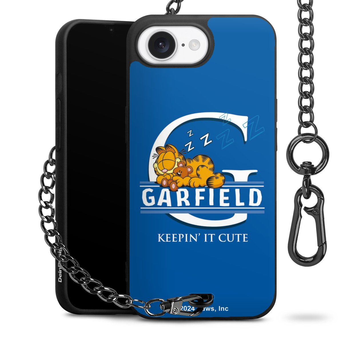 Die Handyhülle verfügt über eine mittig am unteren Rand platzierte Öse, an der die Metallkette stabil befestigt ist. Bestelle die Hülle einfach für Dein Smartphone-Modell, dann passt sie wie angegossen und Du brauchst sie bloß einmal anzudrücken. Handy in die Tasche, Karabiner an den Hosenbund – schon kann die Party starten.