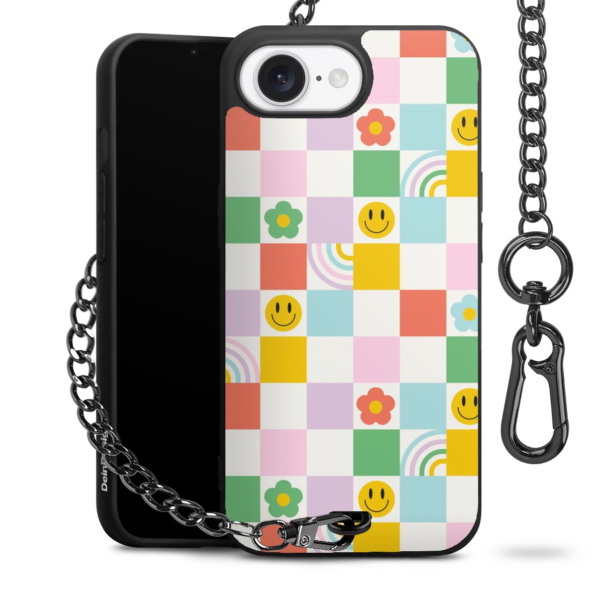 Die mattschwarze Silikon-Handyhülle besteht aus robustem TPU (thermoplastisches Polyurethan). Sie ist flexibel und schützt Dein Smartphone vor Stößen und Kratzern. Die Kette sowie der Karabinerhaken sind aus Metall in Gunmetal-Optik gefertigt. Für dieses Produkt kommen ausschließlich TÜV-geprüfte Materialien zum Einsatz.