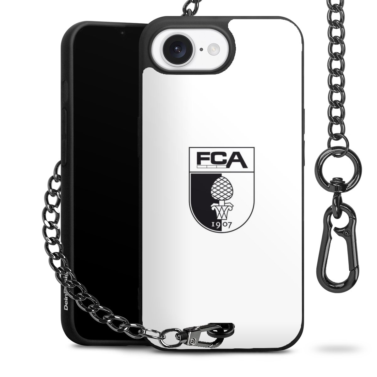 Die mattschwarze Silikon-Handyhülle besteht aus robustem TPU (thermoplastisches Polyurethan). Sie ist flexibel und schützt Dein Smartphone vor Stößen und Kratzern. Die Kette sowie der Karabinerhaken sind aus Metall in Gunmetal-Optik gefertigt. Für dieses Produkt kommen ausschließlich TÜV-geprüfte Materialien zum Einsatz.