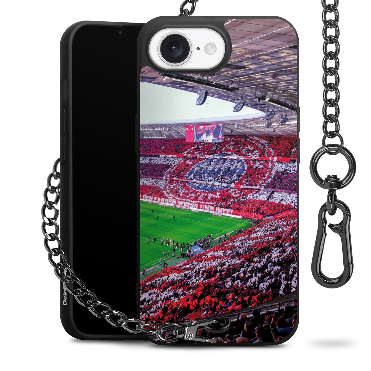 • Mattschwarze Handyhülle mit Metallkette
