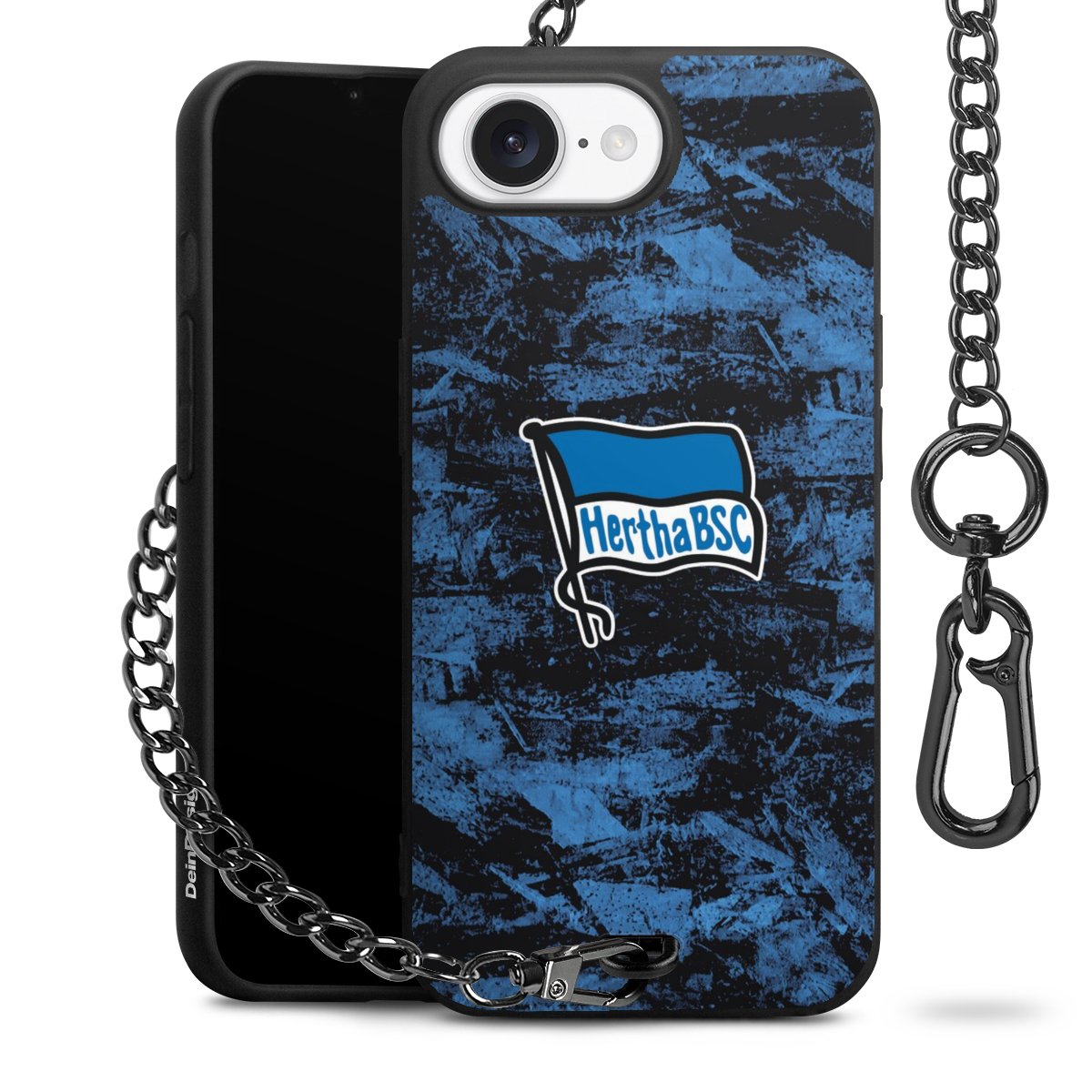 Die mattschwarze Silikon-Handyhülle besteht aus robustem TPU (thermoplastisches Polyurethan). Sie ist flexibel und schützt Dein Smartphone vor Stößen und Kratzern. Die Kette sowie der Karabinerhaken sind aus Metall in Gunmetal-Optik gefertigt. Für dieses Produkt kommen ausschließlich TÜV-geprüfte Materialien zum Einsatz.