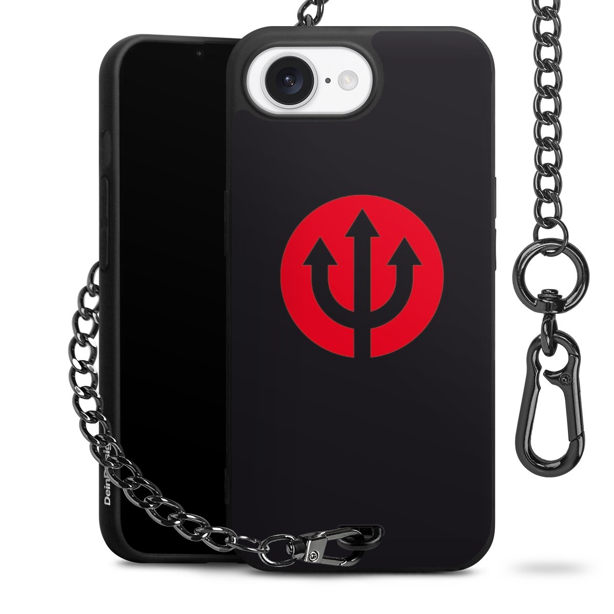 Die mattschwarze Silikon-Handyhülle besteht aus robustem TPU (thermoplastisches Polyurethan). Sie ist flexibel und schützt Dein Smartphone vor Stößen und Kratzern. Die Kette sowie der Karabinerhaken sind aus Metall in Gunmetal-Optik gefertigt. Für dieses Produkt kommen ausschließlich TÜV-geprüfte Materialien zum Einsatz.