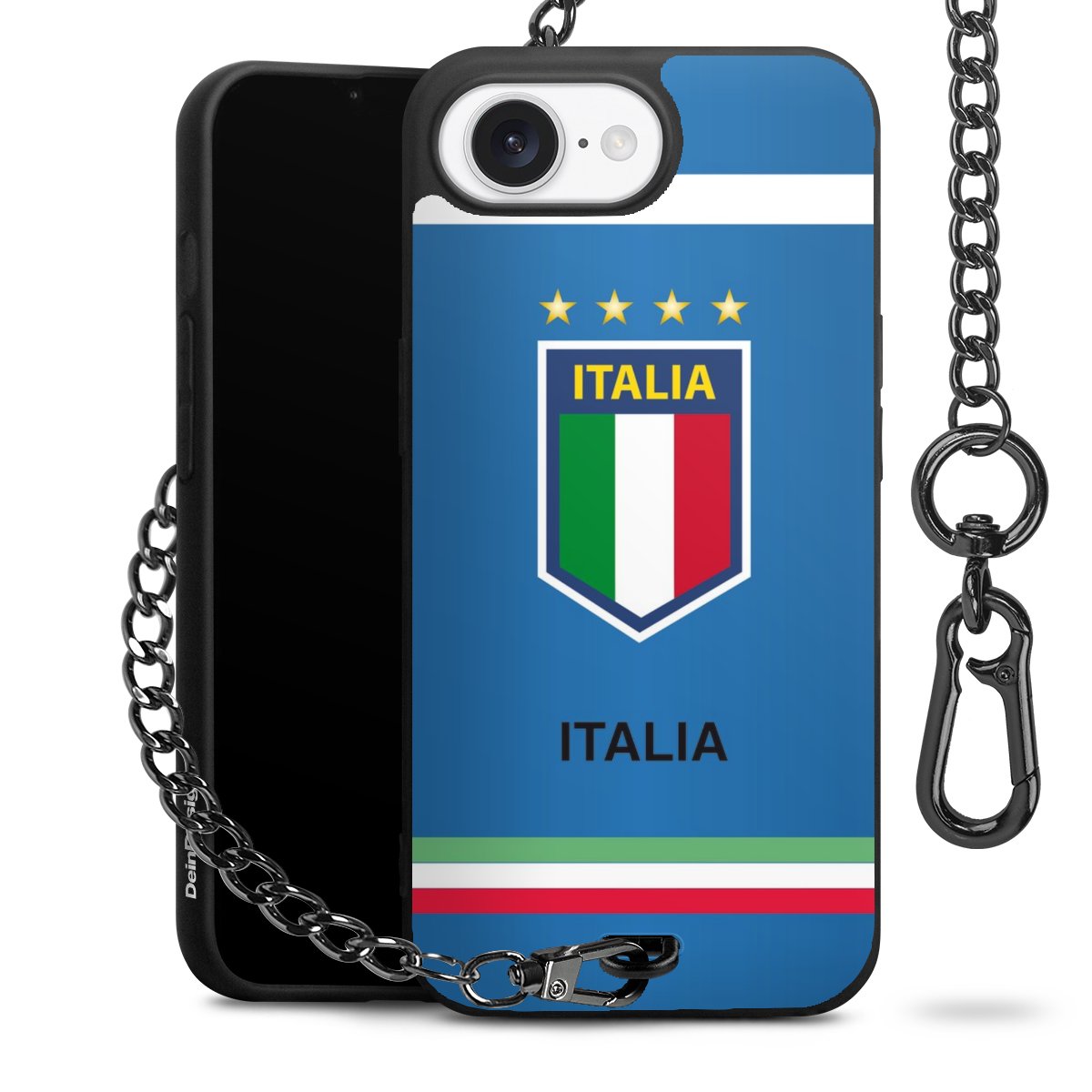 - Mattschwarze Handyhülle mit Metallkette