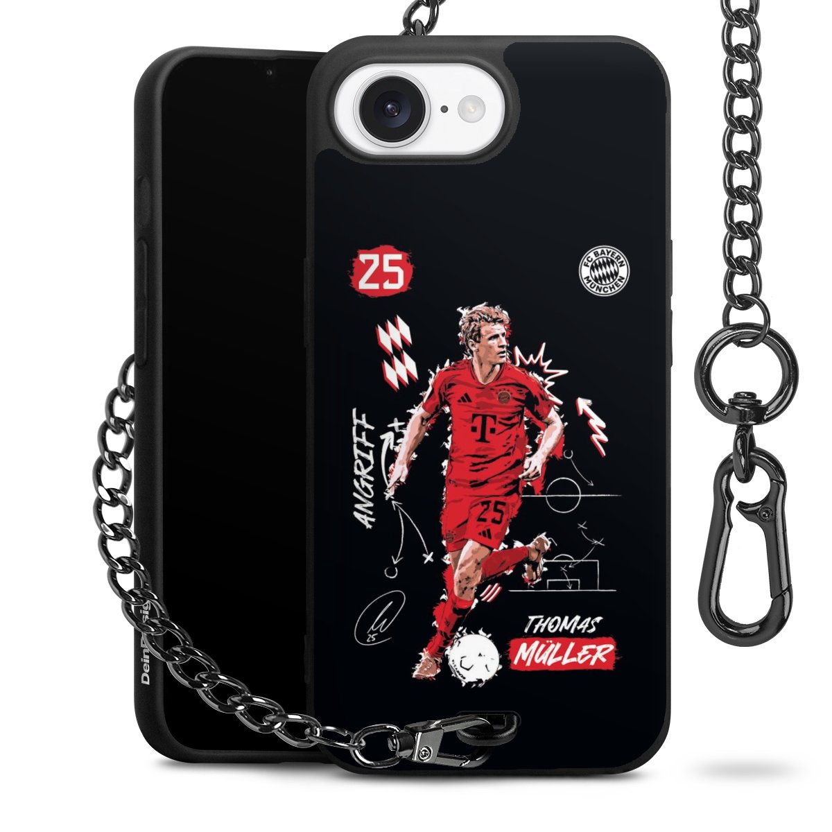 • Mattschwarze Handyhülle mit Metallkette