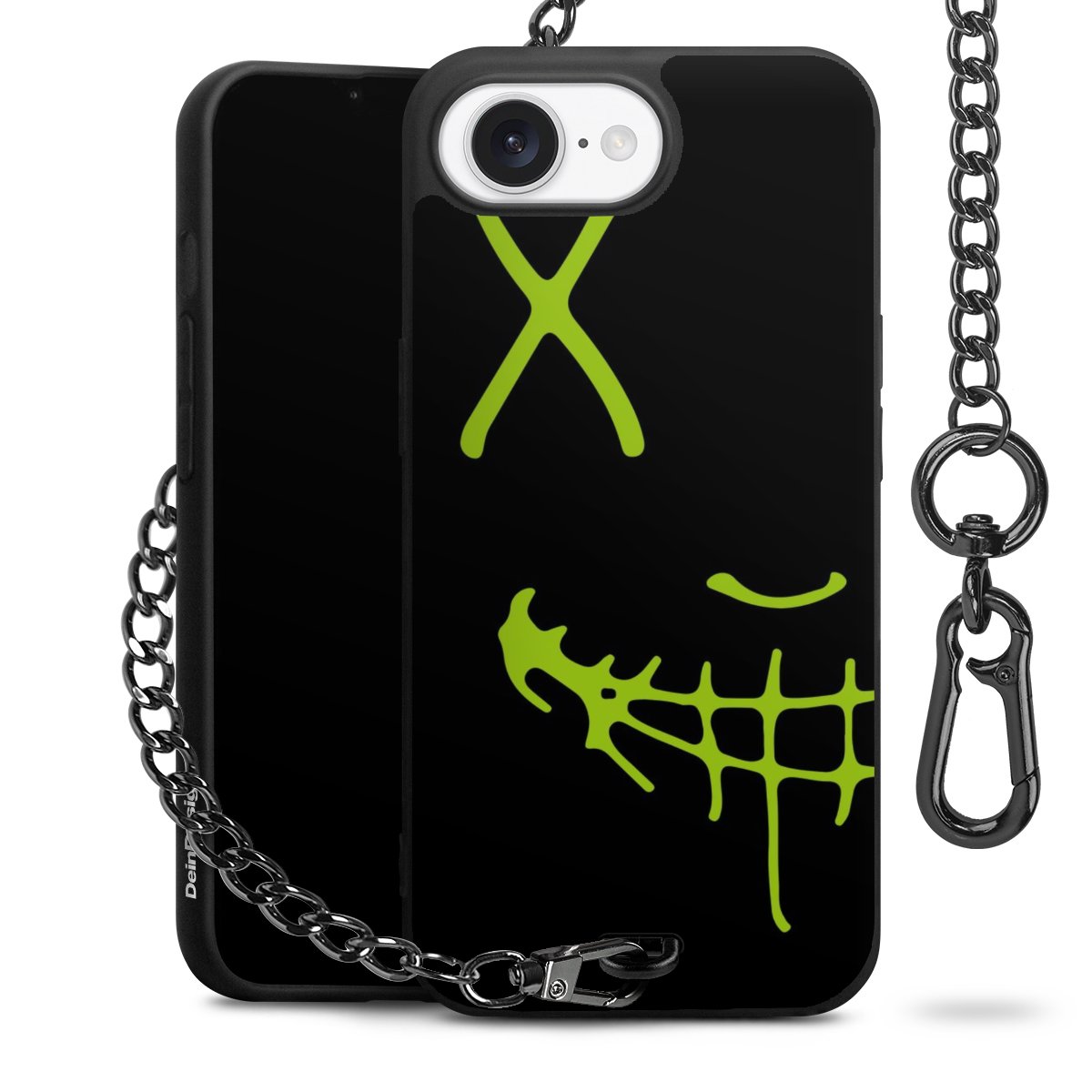 Die mattschwarze Silikon-Handyhülle besteht aus robustem TPU (thermoplastisches Polyurethan). Sie ist flexibel und schützt Dein Smartphone vor Stößen und Kratzern. Die Kette sowie der Karabinerhaken sind aus Metall in Gunmetal-Optik gefertigt. Für dieses Produkt kommen ausschließlich TÜV-geprüfte Materialien zum Einsatz.
