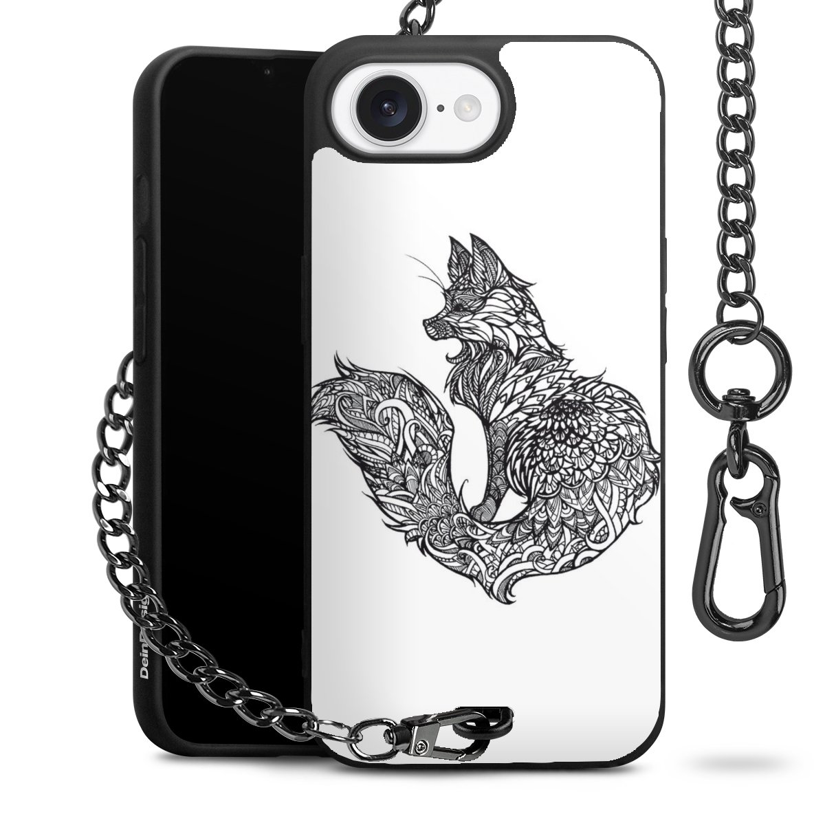 - Mattschwarze Handyhülle mit Metallkette