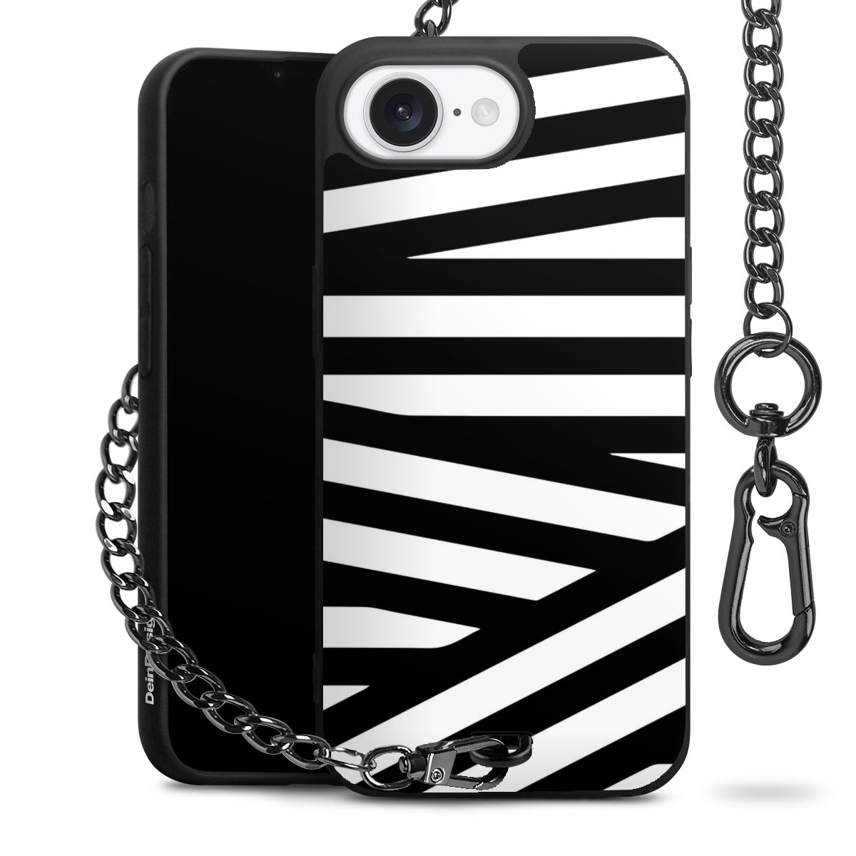 • Mattschwarze Handyhülle mit Metallkette