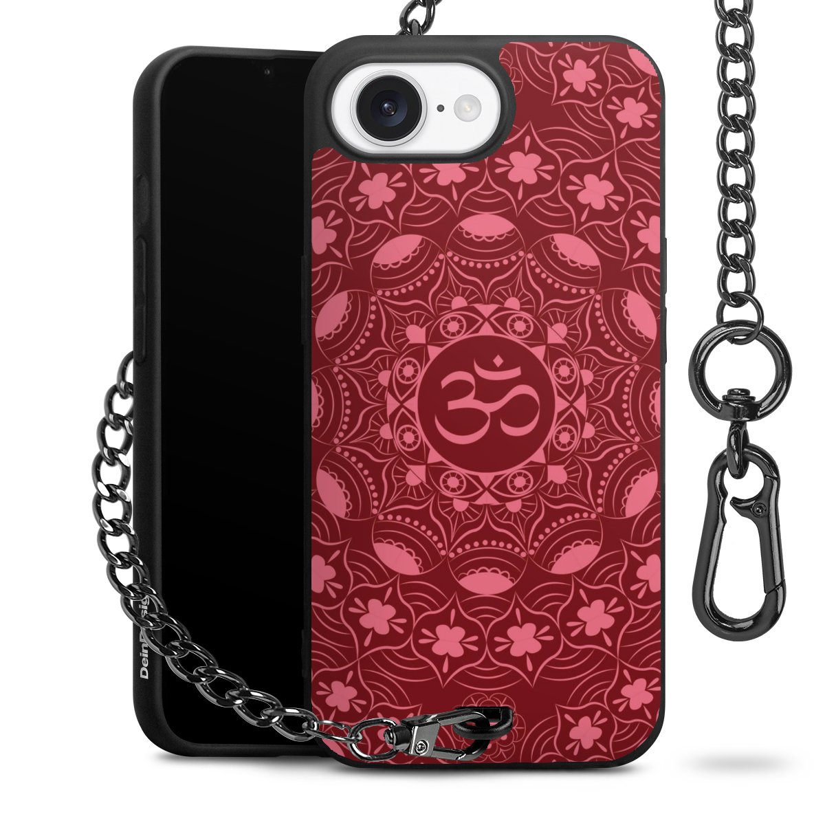 - Mattschwarze Handyhülle mit Metallkette