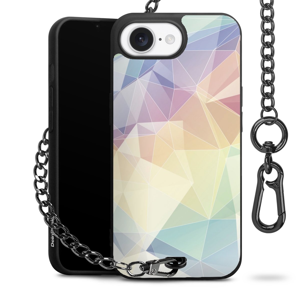 Die mattschwarze Silikon-Handyhülle besteht aus robustem TPU (thermoplastisches Polyurethan). Sie ist flexibel und schützt Dein Smartphone vor Stößen und Kratzern. Die Kette sowie der Karabinerhaken sind aus Metall in Gunmetal-Optik gefertigt. Für dieses Produkt kommen ausschließlich TÜV-geprüfte Materialien zum Einsatz.