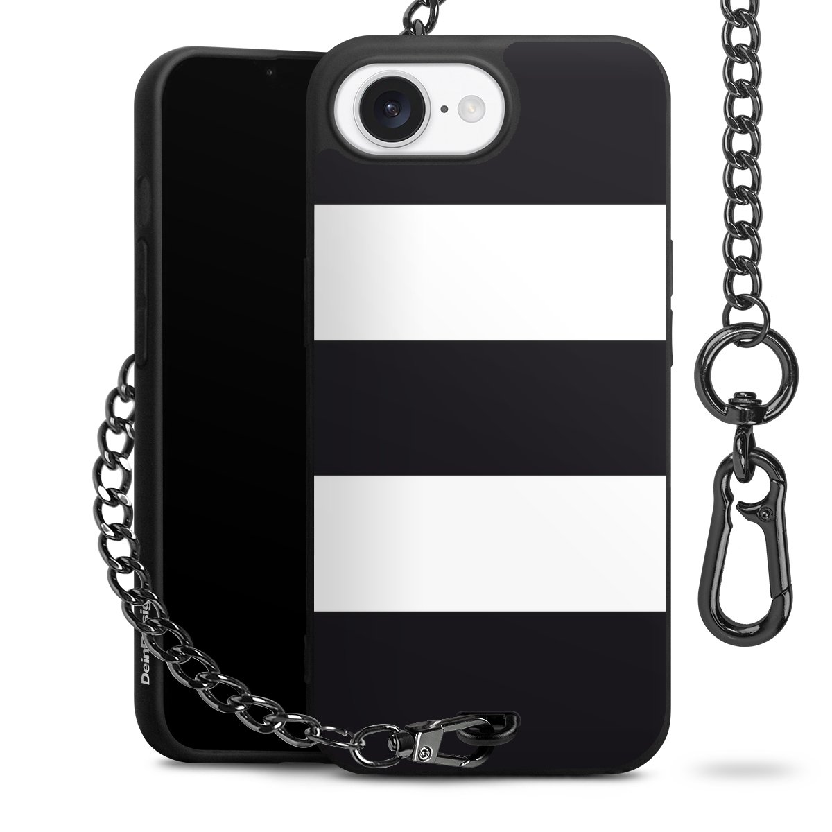 - Mattschwarze Handyhülle mit Metallkette