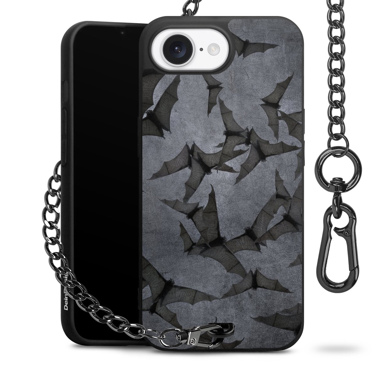 - Mattschwarze Handyhülle mit Metallkette
