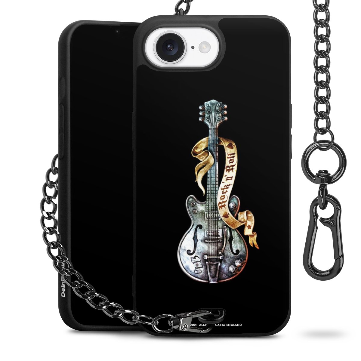 Die mattschwarze Silikon-Handyhülle besteht aus robustem TPU (thermoplastisches Polyurethan). Sie ist flexibel und schützt Dein Smartphone vor Stößen und Kratzern. Die Kette sowie der Karabinerhaken sind aus Metall in Gunmetal-Optik gefertigt. Für dieses Produkt kommen ausschließlich TÜV-geprüfte Materialien zum Einsatz.