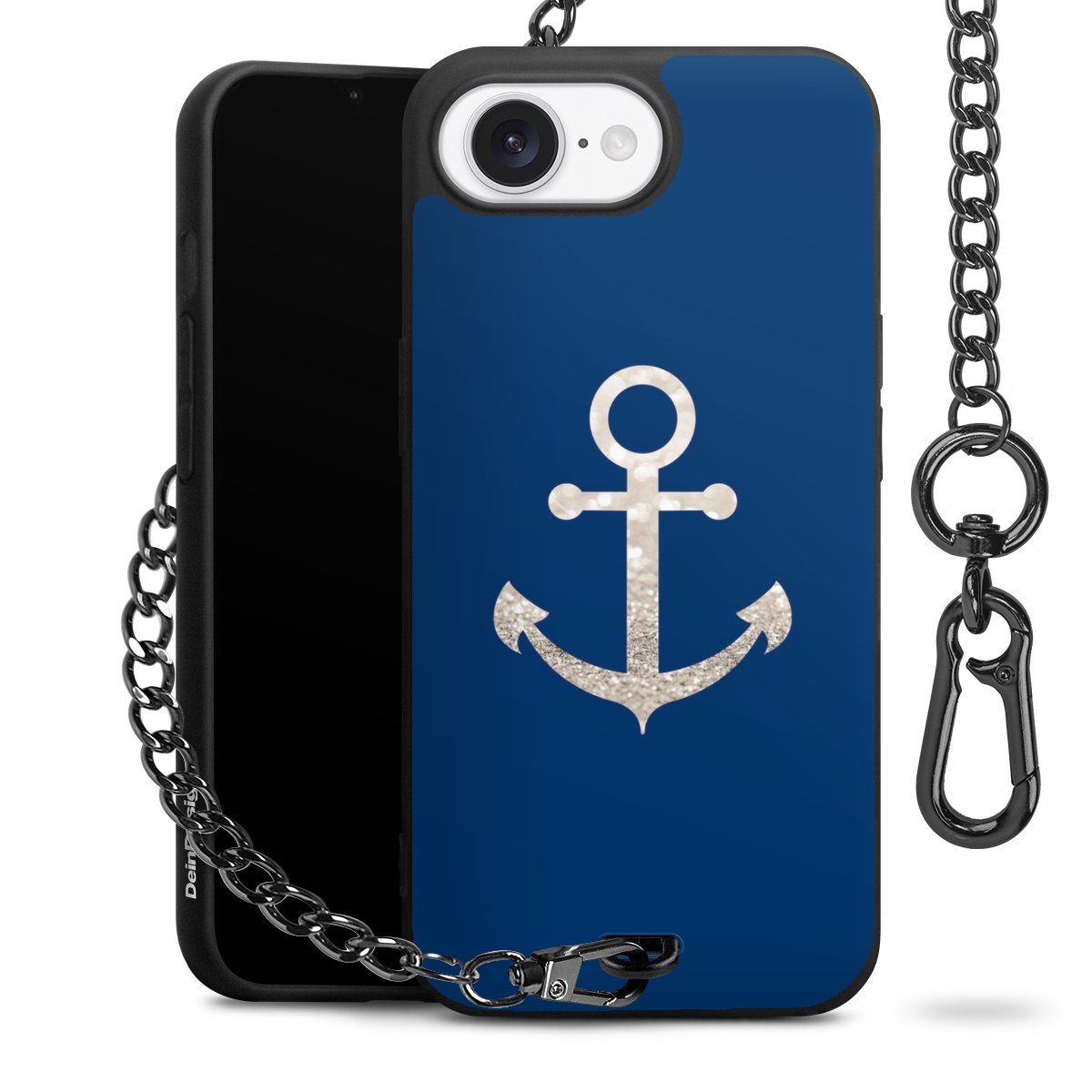 - Mattschwarze Handyhülle mit Metallkette
