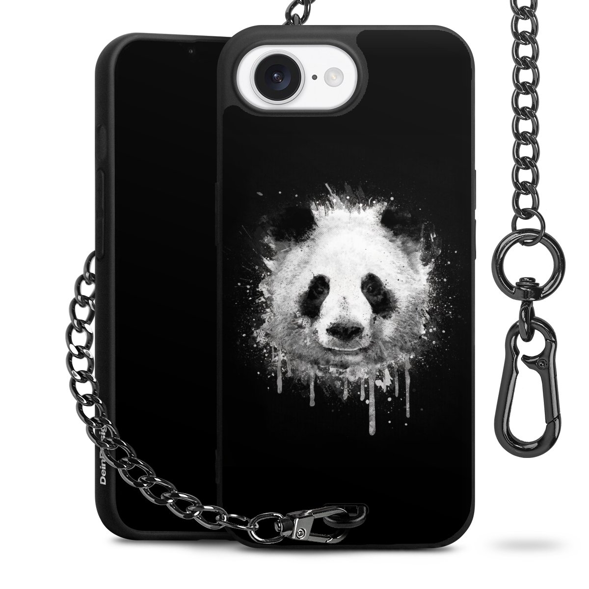 • Mattschwarze Handyhülle mit Metallkette
