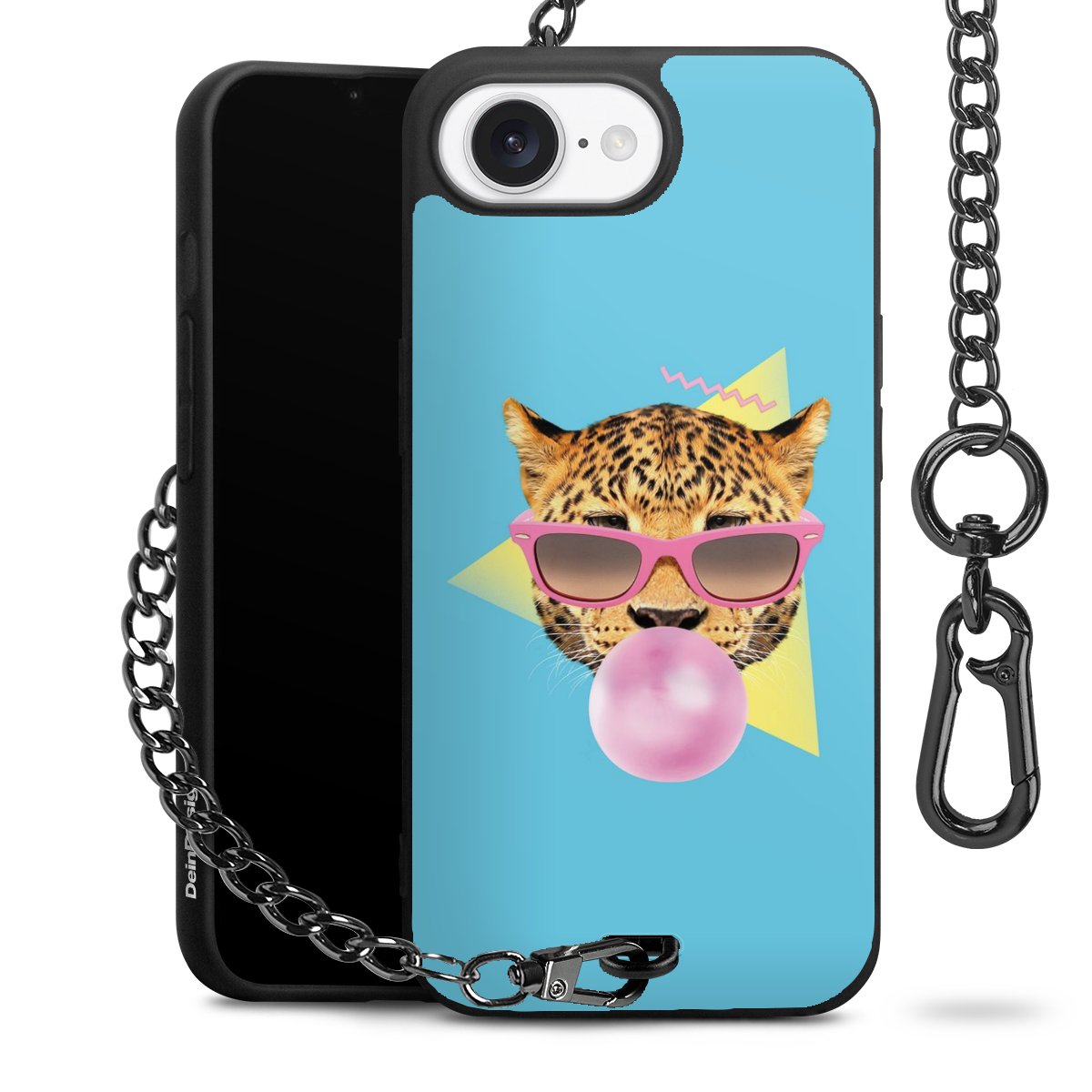 Die Handyhülle verfügt über eine mittig am unteren Rand platzierte Öse, an der die Metallkette stabil befestigt ist. Bestelle die Hülle einfach für Dein Smartphone-Modell, dann passt sie wie angegossen und Du brauchst sie bloß einmal anzudrücken. Handy in die Tasche, Karabiner an den Hosenbund – schon kann die Party starten.
