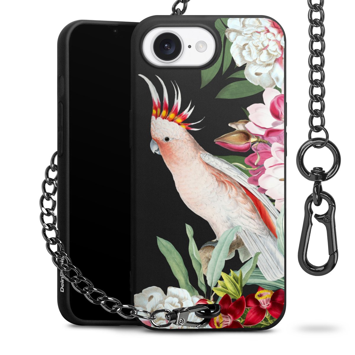 Die mattschwarze Silikon-Handyhülle besteht aus robustem TPU (thermoplastisches Polyurethan). Sie ist flexibel und schützt Dein Smartphone vor Stößen und Kratzern. Die Kette sowie der Karabinerhaken sind aus Metall in Gunmetal-Optik gefertigt. Für dieses Produkt kommen ausschließlich TÜV-geprüfte Materialien zum Einsatz.